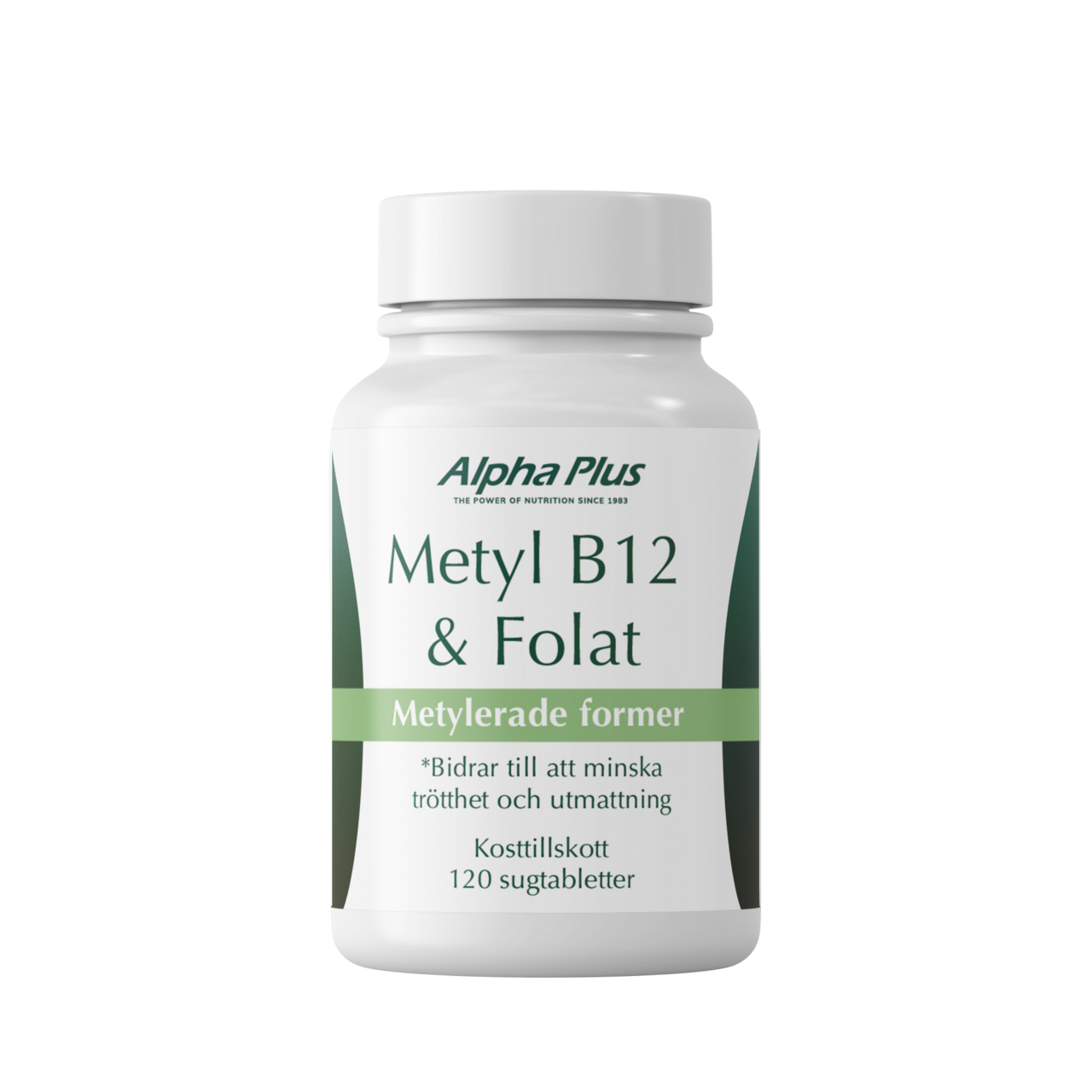 Alpha Plus Metyl B12 & Folat kombinerar metylerade (aktiva) former av vitamin B12 och folat, metylkobalamin och 5-metyltetrahydrofolat (Quatrefolic®). Metylerade former är mer biotillgängliga än icke-metylerade former då de kan användas direkt av kroppen.